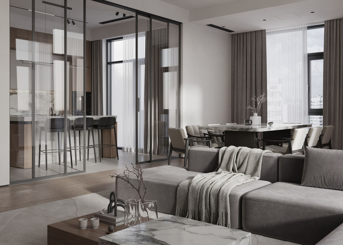 Key features of transitional interior design include neutral color palettes, elegant furnishings, and a mix of textures. The style is known for its understated luxury, blending modern furniture with traditional decor pieces. Custom furniture, soft lighting, and organic materials bring a sense of warmth, while clean lines and minimalistic touches keep the space fresh and uncluttered.